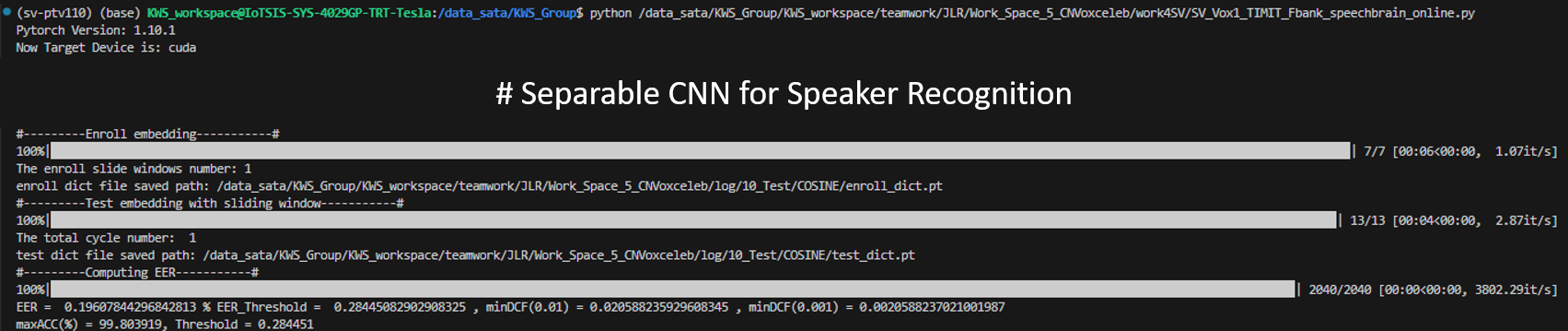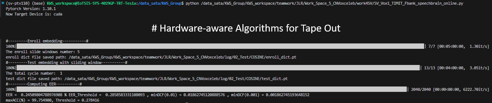 He also made the algorithms hardware-friendly, transferring long audio segments into shorter segments and integrating the processing results from short audio segments. Achieved just about 0.05% performance deterioration on the systems. (0.245% compared with 0.196%)